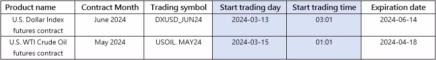 Các hợp đồng CFD Futures mới sẽ được giao dịch theo lịch trình sau: