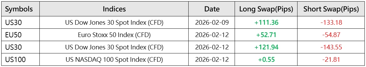 Indices CFD Swaps Special Adjustment Notice(9 Feb 2026 - 12 Feb 2026)