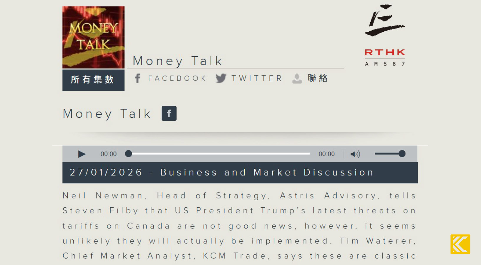 RTHK Radio 3, Money Talk Programme — 27 January