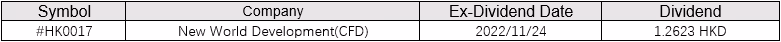 Khách hàng nắm giữ cổ phiếu CFD hoặc ETF cho đến ngày giao dịch không hưởng cổ tức được liệt kê ở trên sẽ nhận được hoặc bị tính cổ tức nếu họ mua hoặc bán cổ phiếu CFD hoặc ETF tương ứng. Cổ tức sẽ không được nhận hoặc bị tính nếu họ mua hoặc bán vào hoặc sau ngày giao dịch không hưởng cổ tức.