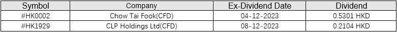Khách hàng nắm giữ cổ phiếu CFD hoặc ETF cho đến ngày giao dịch không hưởng cổ tức được liệt kê ở trên sẽ nhận được hoặc bị tính cổ tức nếu họ mua hoặc bán cổ phiếu CFD hoặc ETF tương ứng. Cổ tức sẽ không được nhận hoặc bị tính nếu họ mua hoặc bán vào hoặc sau ngày giao dịch không hưởng cổ tức.